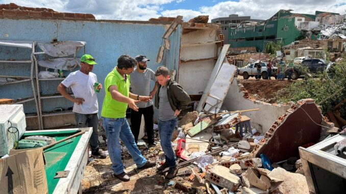 Na tarde de ontem, o deputado federal Rodrigo Estacho esteve no município de Rio Bonito do Iguaçu (PR) junto com o governador Carlos Massa Ratinho Júnior, o presidente da Assembleia Legislativa do Paraná (ALEP) Alexandre Curi, o secretário das Cidades Guto Silva e diversas equipes estaduais e municipais para constatar os estragos causados pelo tornado que devastou a cidade e articular a resposta política-administrativa.