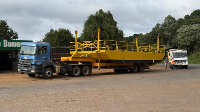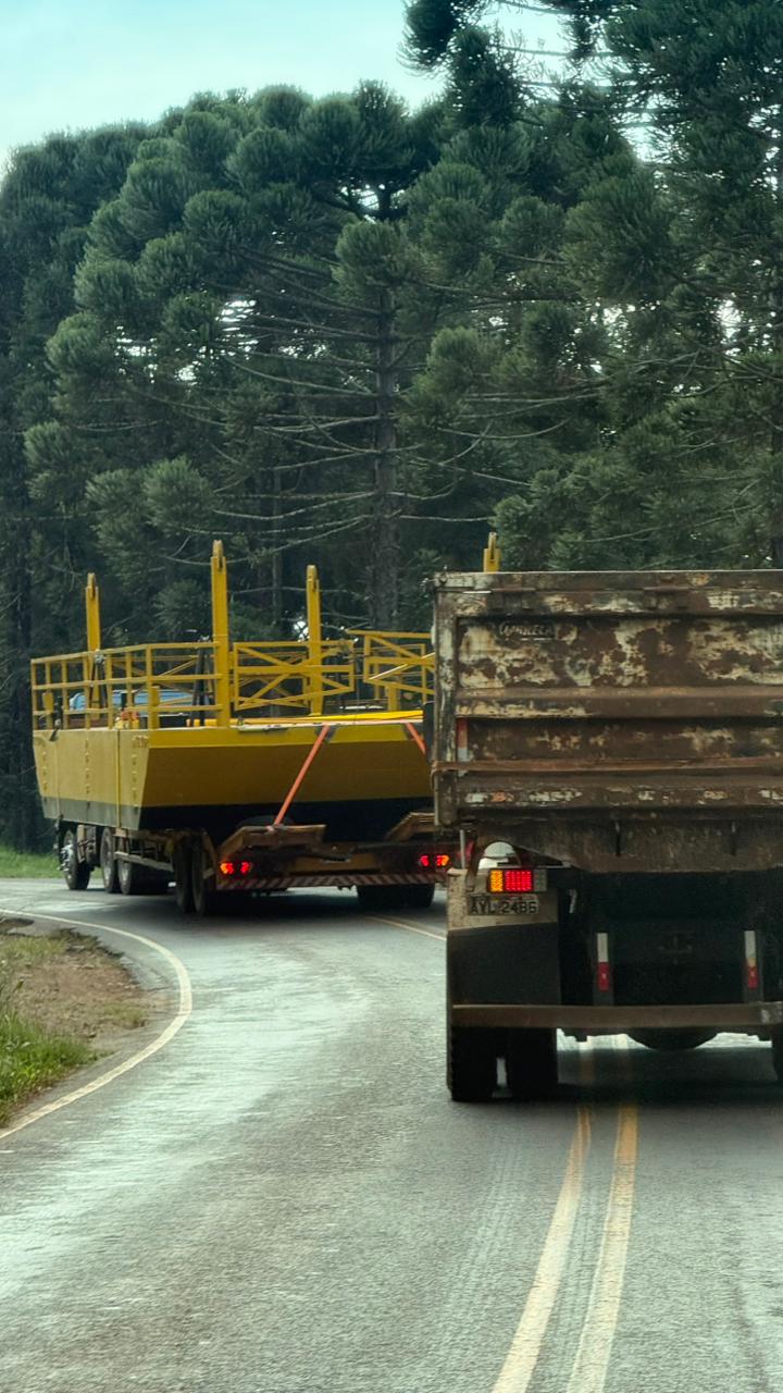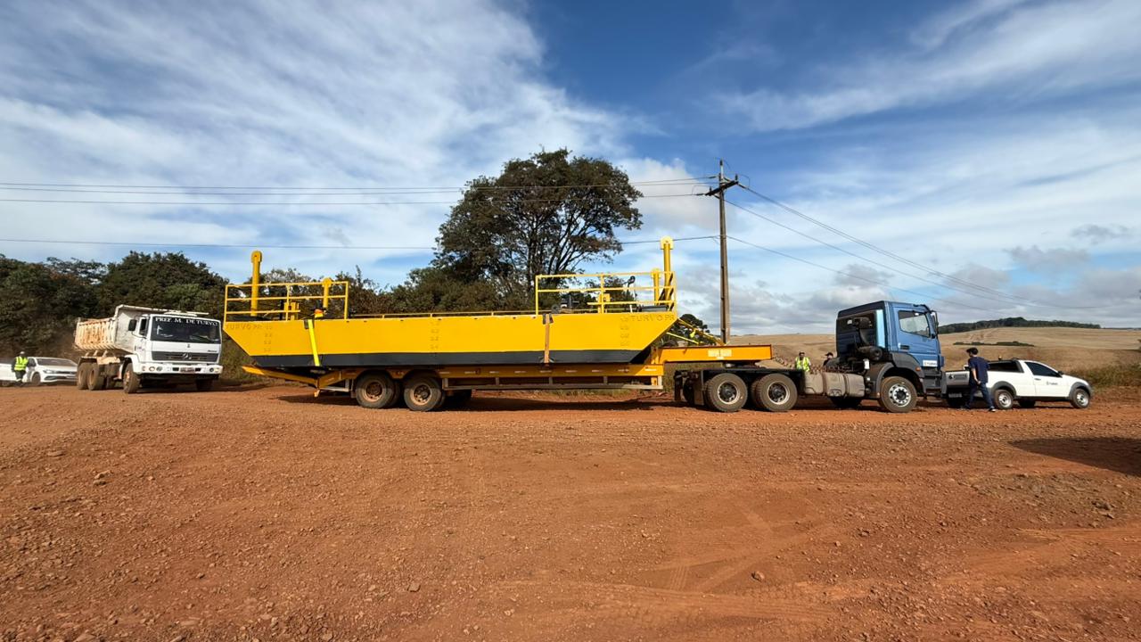 A região de Turvo, no Centro-Sul do Paraná, recebeu um importante avanço na mobilidade com o transporte da nova balsa que irá operar na travessia sobre o Rio Ivaí, beneficiando diretamente moradores, produtores rurais e o escoamento da produção local.